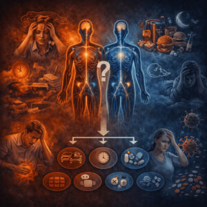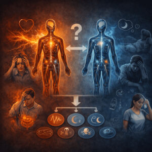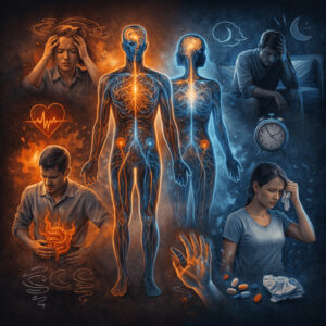 不眠、頭痛、胃の不調、だるさ、めまいが別々に起こっているように見えても、背景では神経系の乱れがつながっていることがあります。