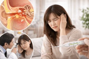 耳の痛み、発熱、耳だれ、急な難聴を伴う場合は、まず専門医院を優先してください。